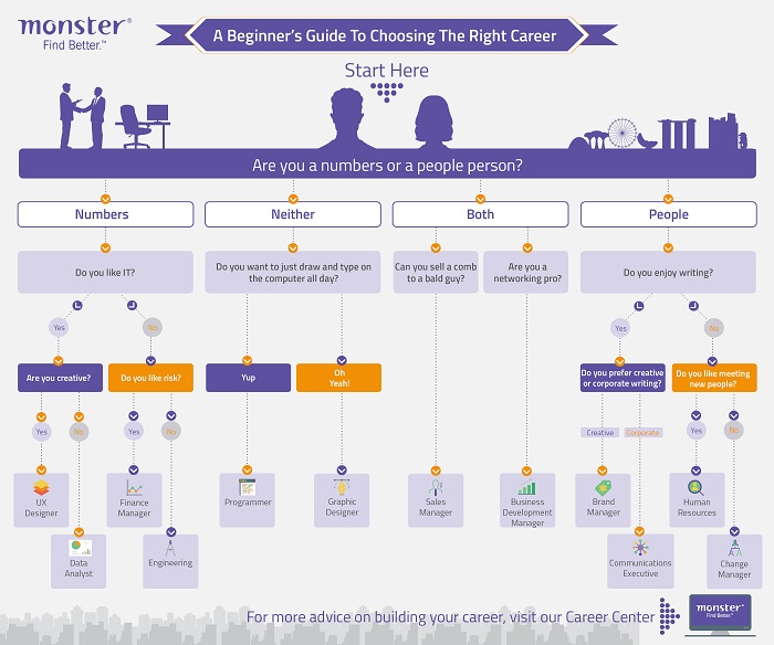 Jobs in Singapore are aplenty – but which career is right for you? Whether you’re looking for a change, or just starting out, we’re here to help you pick the right path. Our handy guide isn’t an official career compass, but a fun way to help set your sites on the horizons.